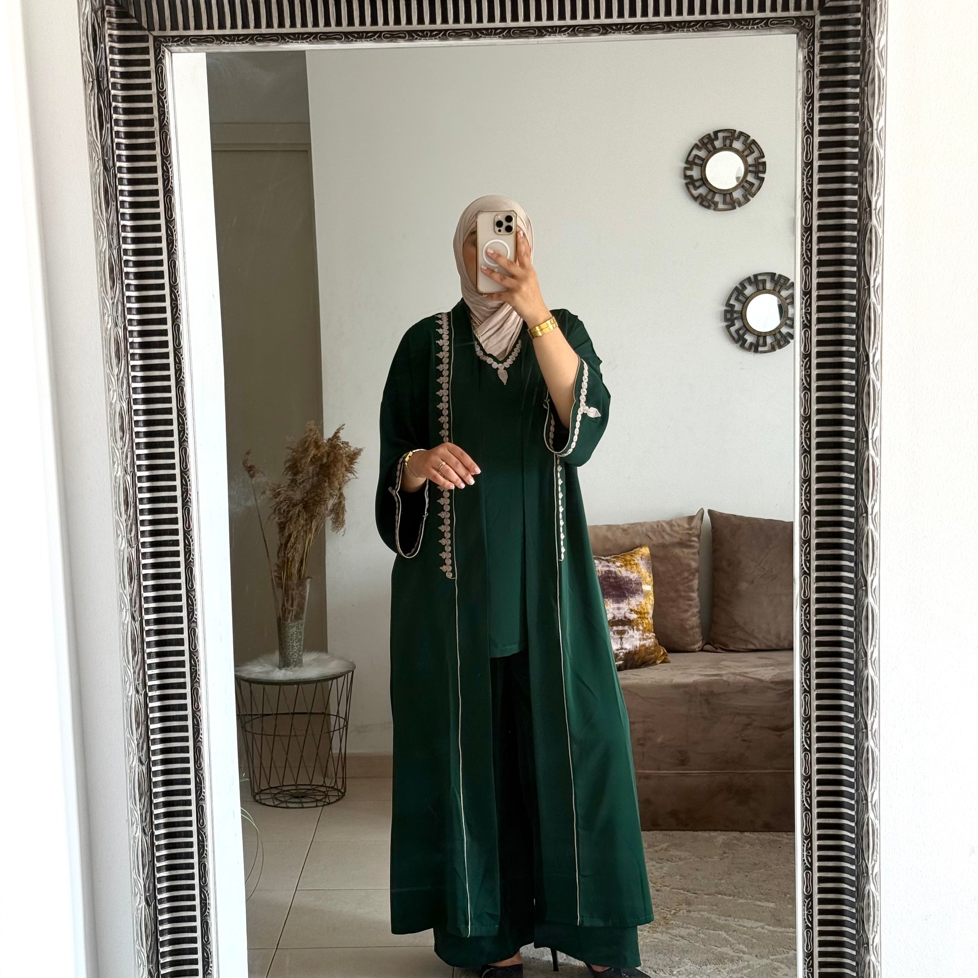 Elegante Jabador de 3 piezas para mujer, ideal para la colección de Eid. Diseño sofisticado con detalles delicados, perfecta para lucir con estilo en celebraciones especiales.