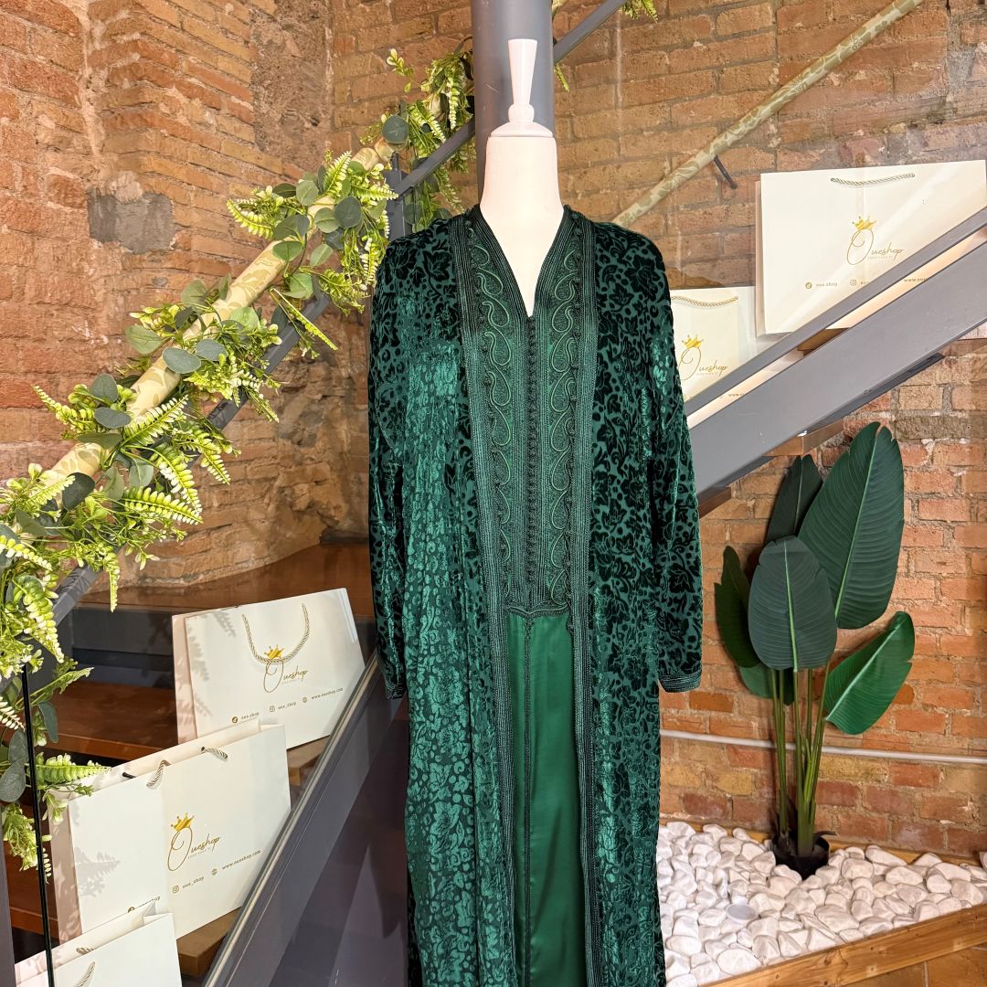 Elegante Caftan de 2 piezas para mujer, ideal para la colección de Eid. Diseño sofisticado con detalles delicados, perfecta para lucir con estilo en celebraciones especiales.
